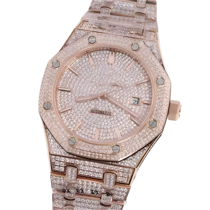 Iced Out Octagon Moissanite Bust Down Gold Rose Watch